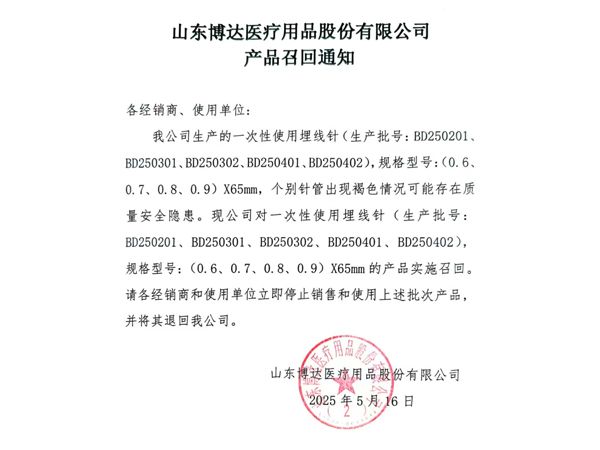山東博達(dá)醫(yī)療用品股份有限公司是生產(chǎn)可吸收性外科縫線專業(yè)廠家,主要產(chǎn)品有可吸收縫合線 、內(nèi)窺鏡圈套線、可吸收外科縫線、快吸收美容線、醫(yī)用羊腸線 膠原蛋白線以先進(jìn)的生物技術(shù)提取了健康哺乳動物內(nèi)臟的膠原蛋白為基材,采用先進(jìn)的工藝加工而成,線體的主要成分為高純度膠原蛋白,并獲得了國家發(fā)明專利,頒布了YZB/國6301-2013《可吸收性外科縫線》產(chǎn)品標(biāo)準(zhǔn),并通過了ISO9001:2015和ISO13485:2016質(zhì)量管理體系認(rèn)證。